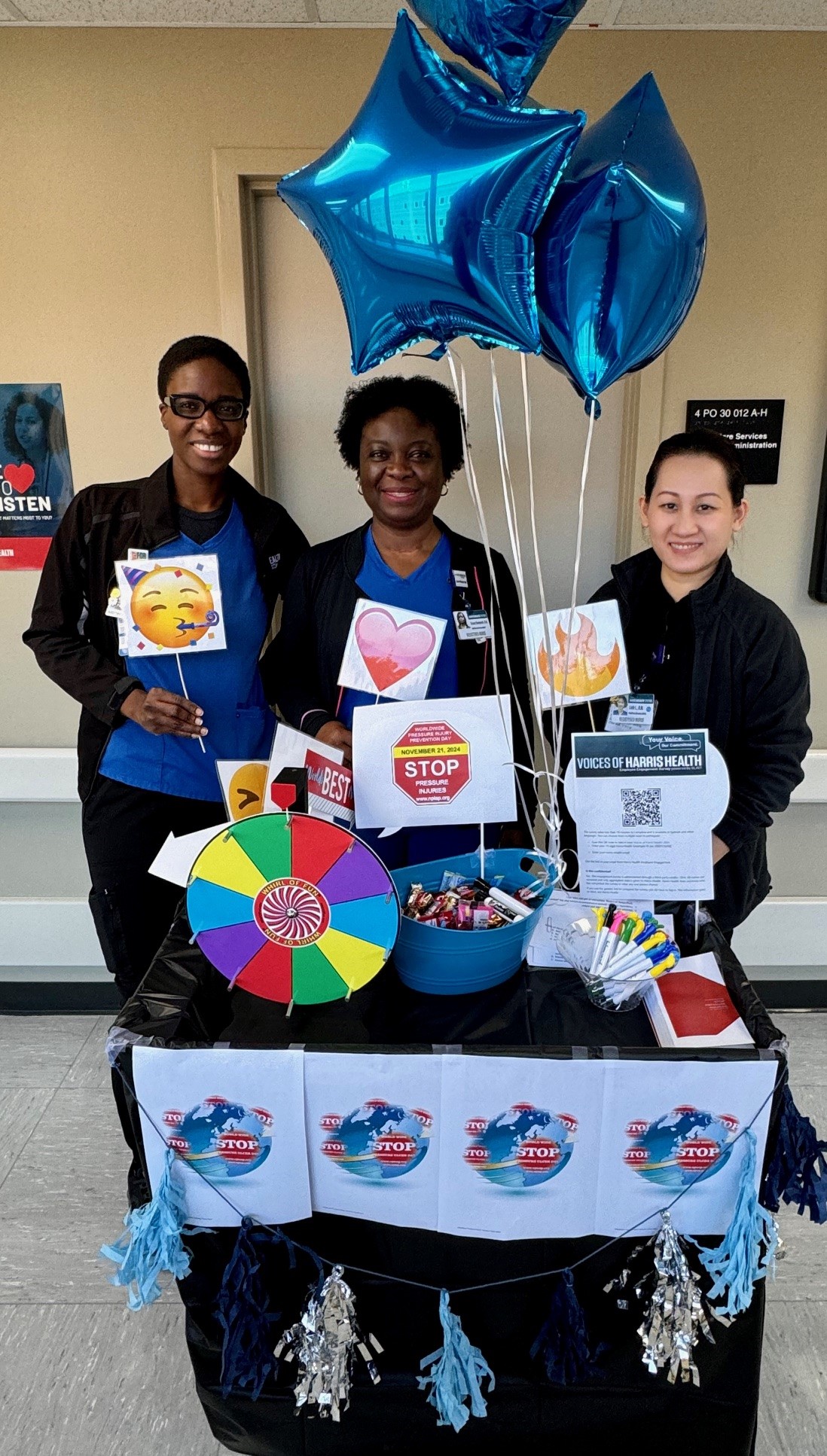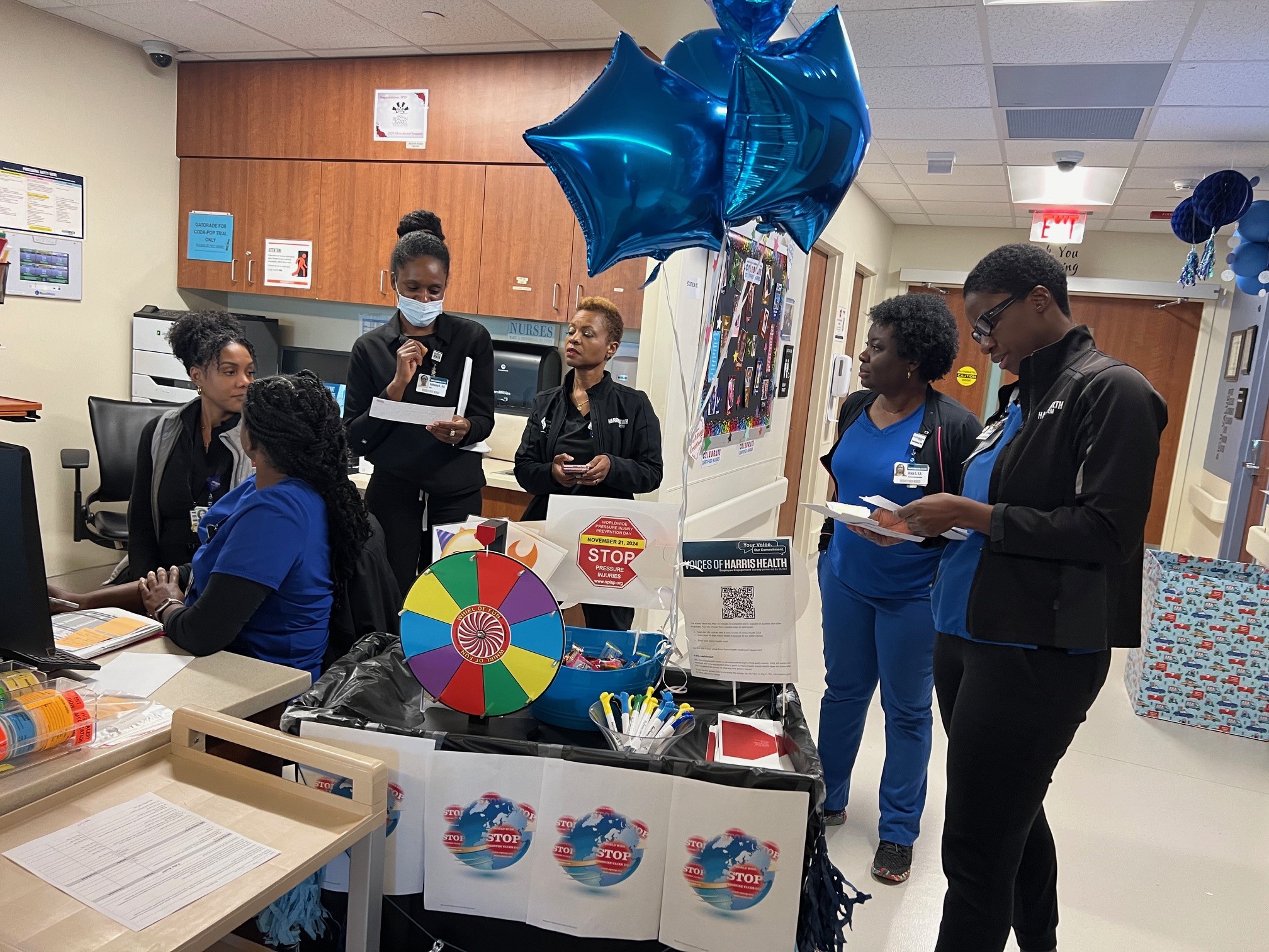 We did this last year and the drinks, snacks and pressure injury information were well received by staff. They like having the color visual reference to refer to and it reminds everyone to implement pressure injury prevention measures."