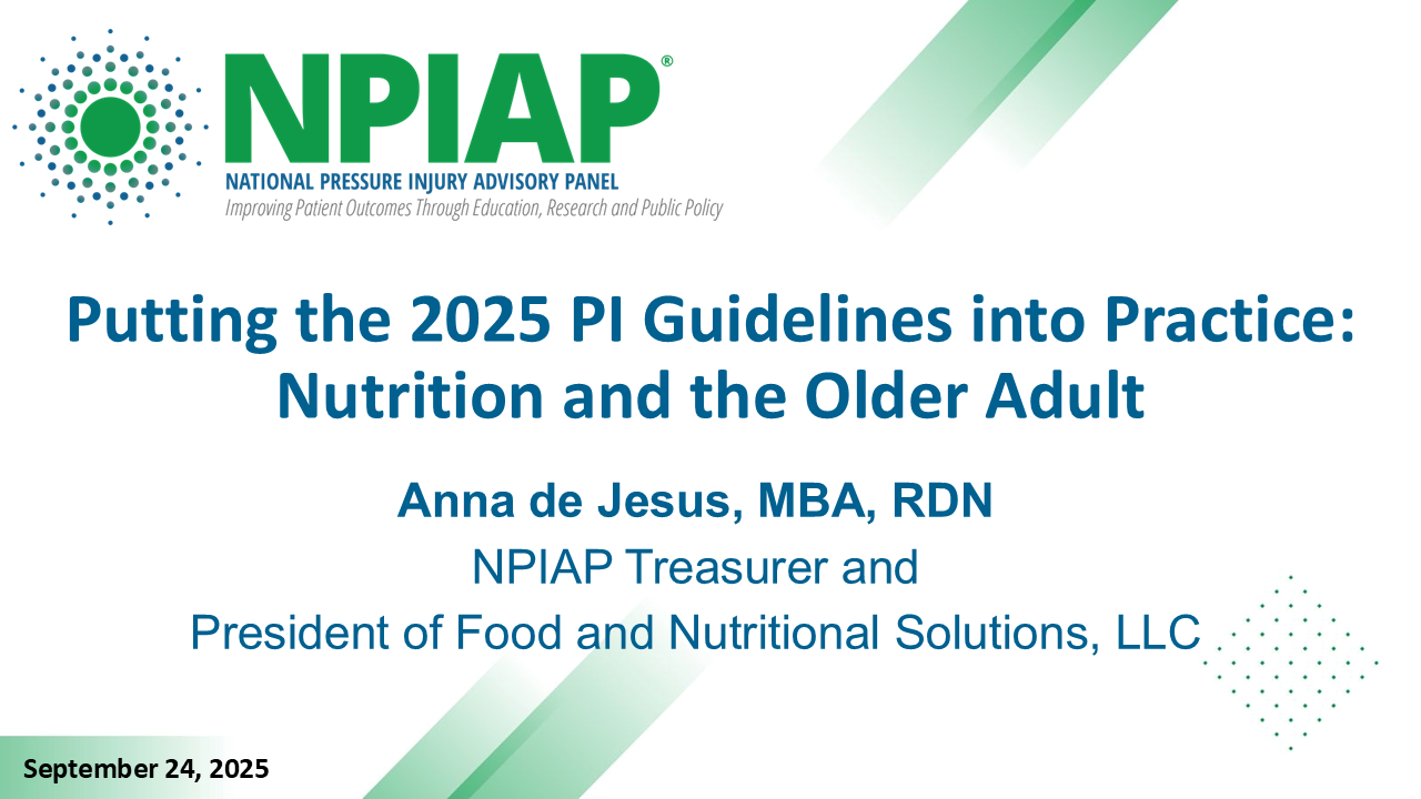The National Pressure Injury Advisory Panel (NPIAP) brings you cutting-edge, evidence-based webinars throughout the year, designed to enhance your knowledge in the vital field of pressure injury prevention and treatment. Led by experts in the field, our webinars explore a wide array of topics, offering valuable insights for healthcare professionals across all disciplines. Whether you are new to pressure injury care, or looking to deepen your expertise, our webinars will be brought to you monthly throughout the year. Recordings of past webinars are also available for purchase, ensuring you have continued access to the best practices and the latest developments. Interested in taking your involvement further? Consider sponsoring one of our impactful webinars. For more information on how you can partner with us, visit our Sponsorship Opportunities page.